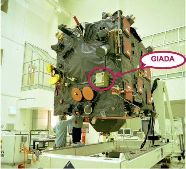 Image above: The location of GIADA marked on the Rosetta spacecraft. Image courtesy Alessandra Rotundi.