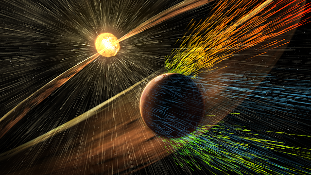 Video above: Created using data from NASA's Mars Atmosphere and Volatile Evolution (MAVEN) mission, this visualization shows how the solar wind strips ions from the Mars' upper atmosphere into space. Video Credits: NASA-GSFC/CU Boulder LASP/University of Iowa.