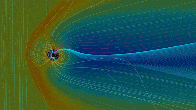 Animation above: The explosive realignment of magnetic fields — known as magnetic reconnection — is a thought to be a common process at the boundaries of Earth’s magnetic bubble. Magnetic reconnection can connect Earth’s magnetic field to the interplanetary magnetic field carried by the solar wind or coronal mass ejections. NASA’s Magnetospheric Multiscale, or MMS, mission studies magnetic reconnection by flying through the boundaries of Earth’s magnetic field. Animation Credits: NASA Goddard/SWRC/CCMC/SWMF.