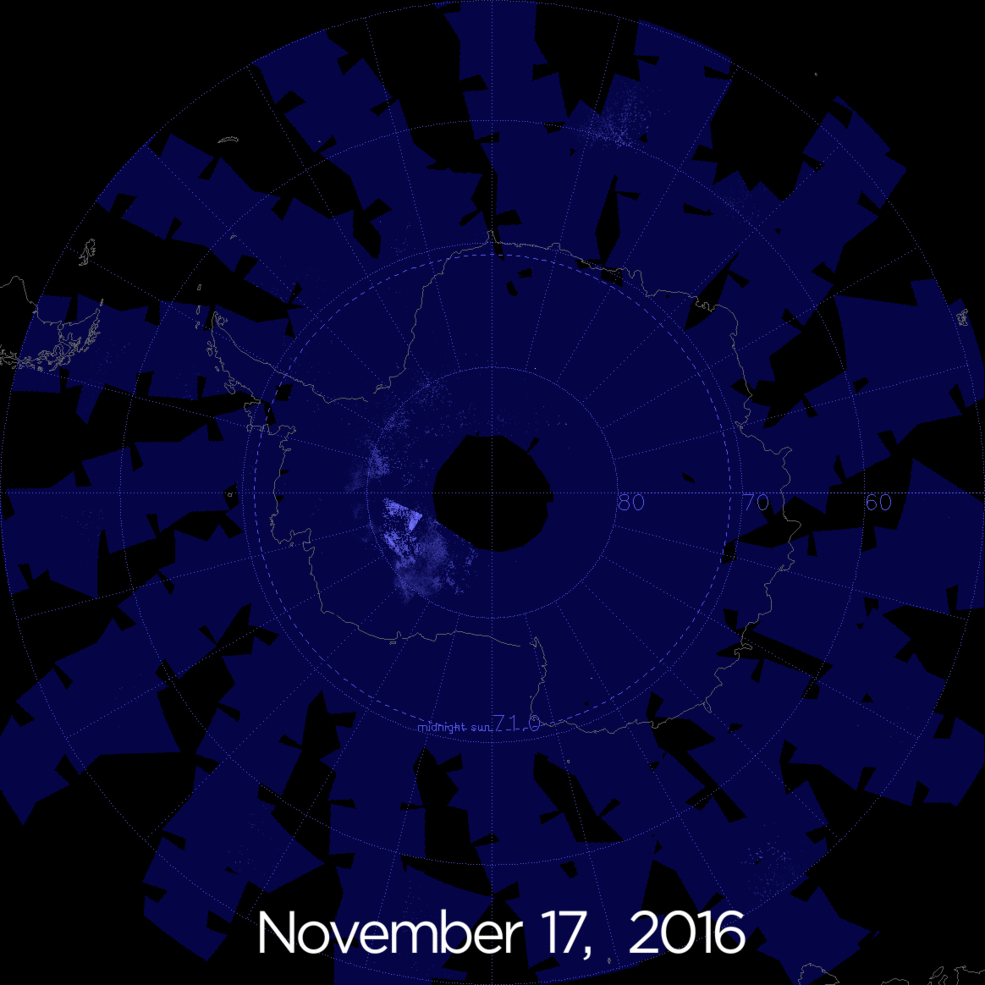Animation above: Data from NASA’s Aeronomy of Ice in the Mesosphere, or AIM, spacecraft shows the sky over Antarctica glowing electric blue due to noctilucent, or night-shining, clouds. This data was collected from Nov. 17-28, 2016. Animation Credits: NASA/HU/VT/CU-LASP/AIM/Joy Ng, producer.