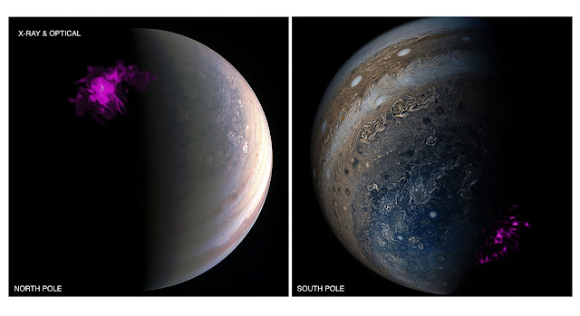 Image, Text, Credits: X-ray: NASA/CXC/UCL/W.Dunn et al, Optical: South Pole:Credits: NASA/JPL-Caltech/SwRI/MSSS/Gerald Eichstädt/Seán Doran North Pole Credit:NASA/JPL-Caltech/SwRI/MSSS/NASA/Lee Mohon/Chandra X-ray Center/Megan Watzke.
