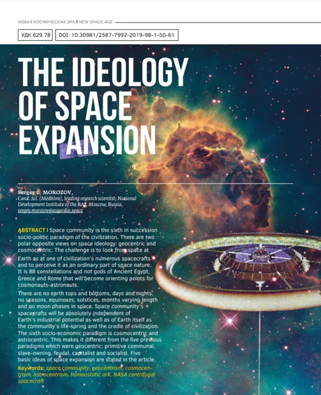 For citation: Morozov S.L. The ideology of space expansion // Aerospace sphere. 2019. No. 1 (98). S. 50-61.