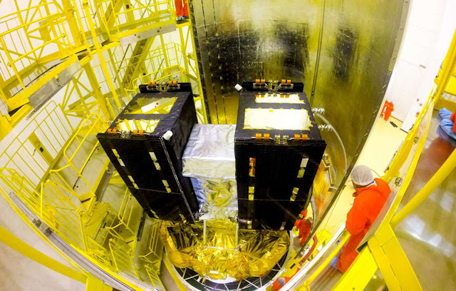 Image above: Satellites 9 and 10 of the European Galileo global positioning program in a archive photo (Arianespace).